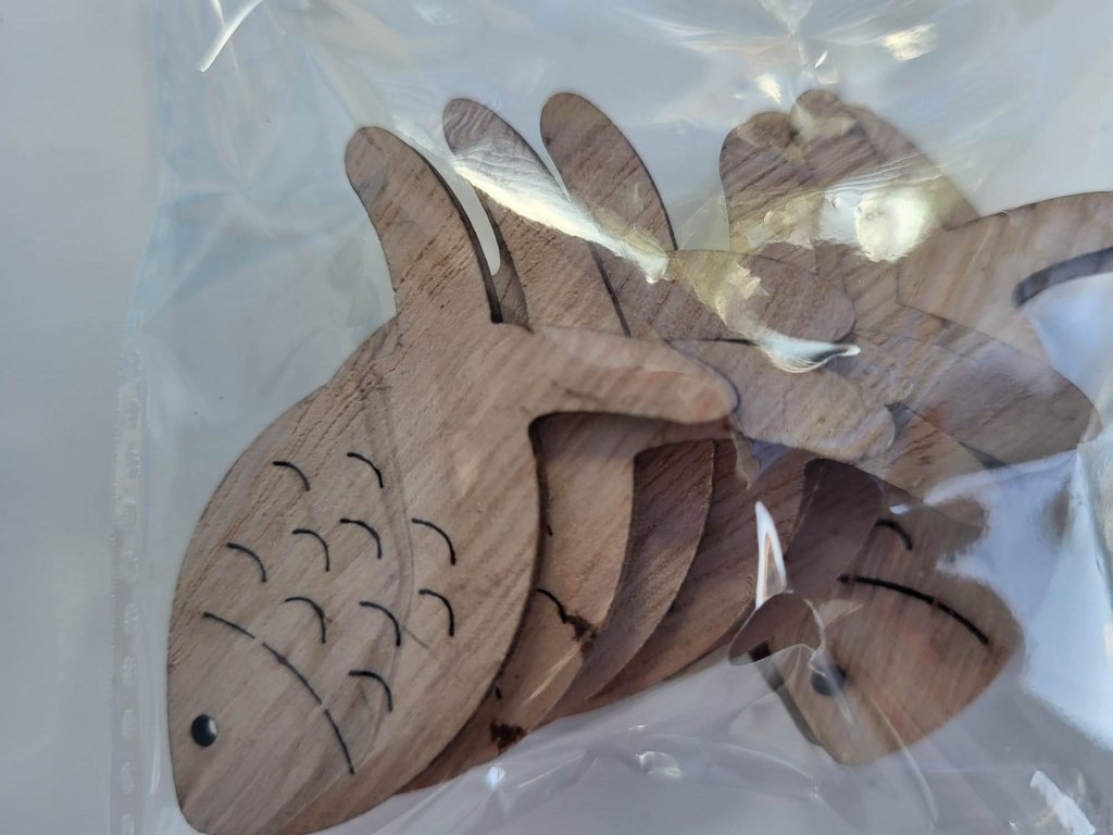 Dřevěná dekorace ryba mini přírodní 10 ks