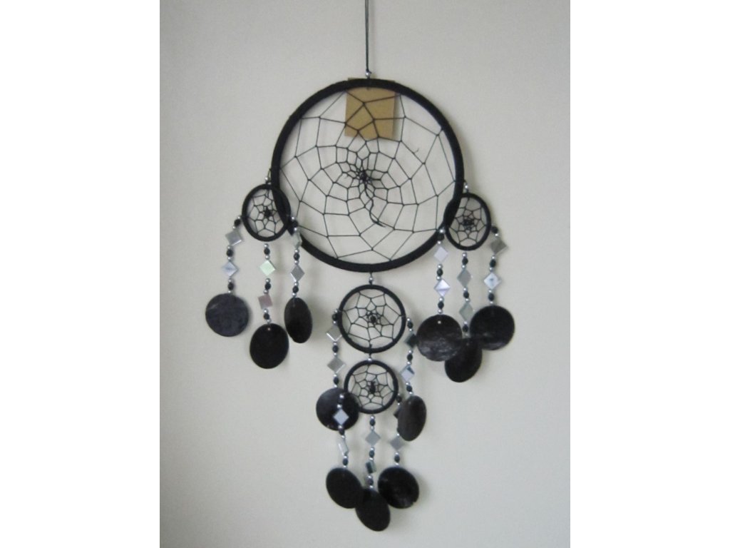 Lapač snů černý mušle a zrcátka