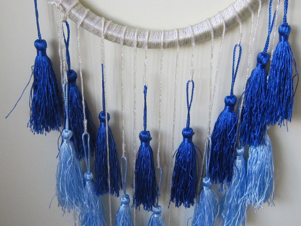Krásná dekorace do interiéru i čarovný pomocník pro krásné sny. Ruční práce. Vyrobeno z textilií, ratanu, korálků a peří. Každý kus je originál.