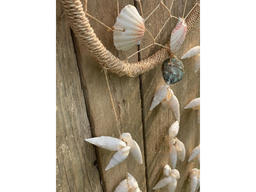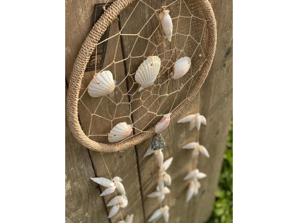 Krásná dekorace do interiéru i čarovný pomocník pro krásné sny. Ruční práce. Vyrobeno z textilií, ratanu, mušlí a peří. Každý kus je originál.