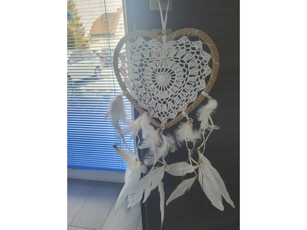 Krásná dekorace do interiéru i čarovný pomocník pro krásné sny. Ruční práce. Vyrobeno z textilií, ratanu, korálků a peří. Každý kus je originál.
