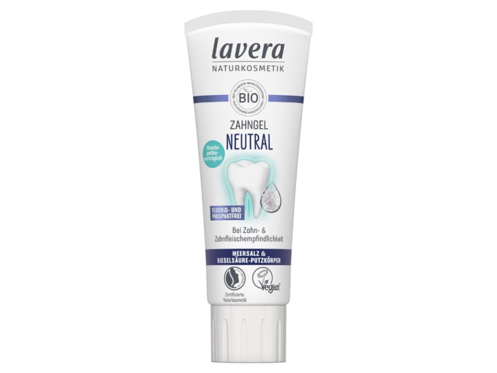 Zubní pasta ve formě gelu bez fluoridů a fosfátů šetrně a důkladně čistí zuby a pečuje o dásně. Jemná zrnka oxidu křemičitého a mořské soli odstraňují zubní plak, který je příčinou vzniku zubního kazu, paradentózy a zubního kamene. Pasta zklidňuje a regeneruje drobná podráždění, snižuje riziko vzniku kazů a posiluje zubní sklovinu. Díky tomu, že neobsahuje fluorid sodný je možné ji používat i při užívání homeopatických přípravků. Pět benefitů zubních past lavera: